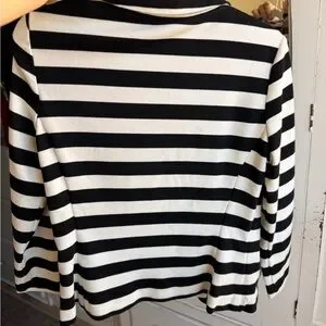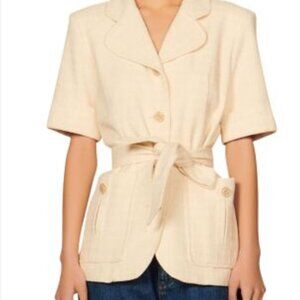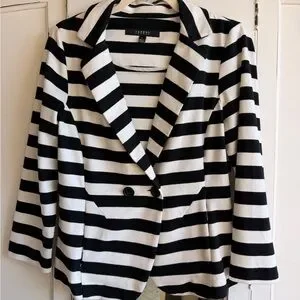 Stylish Sandro blazer with bold black and white stripes. Perfect for versatile styling.