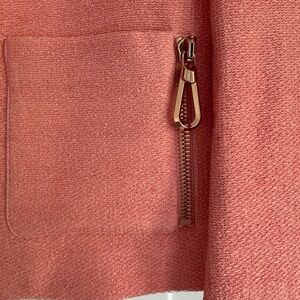 Elegant coral jacket by Sandro. Features textured fabric and a sleek front zipper.