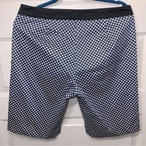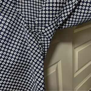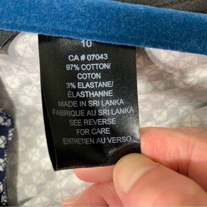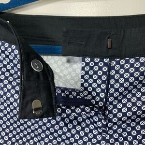 In excellent condition. Great timeless navy blue with white geometric prints "diamond". Stretchy comfy and Lightweight material, 98% cotton. Black Waist band. Zipper, hooks and button closure. Small slit on the side leg hem. Please see pictures