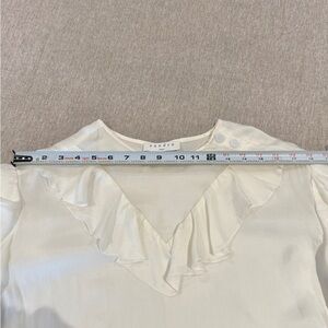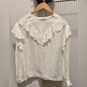 Chic Sandro blouse featuring elegant ruffle details for a dreamy, romantic look. Flowy, soft, and easy to style year-round—layer under a blazer or wear on its own.