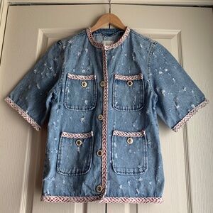 Sandro Distressed Short-Sleeve Denim Jacket