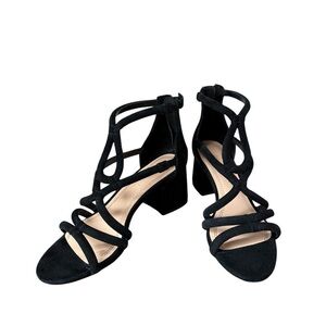Sophisticated black heels with unique strap design. Perfect for any occasion.
