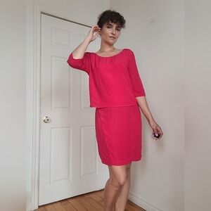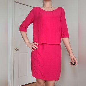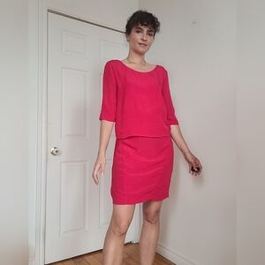 This Sandro vibrant raspberry sheath dress features a clean, straight cut with a sophisticated backless design adorned by a delicate knot detail. With subtle stretch in the back and a vibrant hue, it flatters a size L (3) figure while offering comfort and movement. The lightweight fabric drapes beautifully for a polished finish.