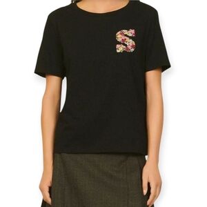 Sandro Henria Embroidered "S" Logo Tee Black T-Shirt Sandro 0 or XS