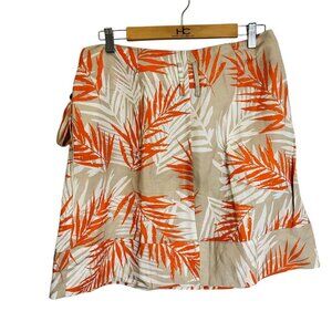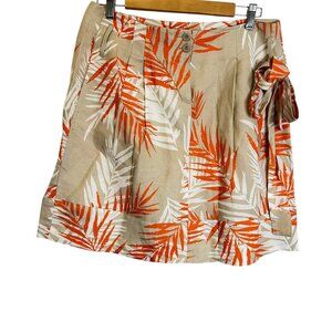 Sandro Linen Blend Tropical Print Mini Skirt Tan Orange Sz 10 Belt Pleated Light