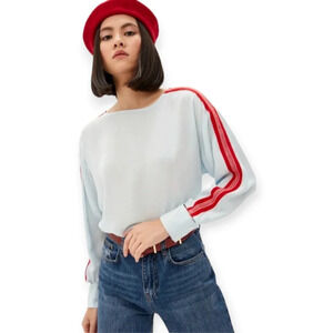 Sandro Lucienne Track Stripe Blouse Blue and Red Sporty Designer 2 or Medium