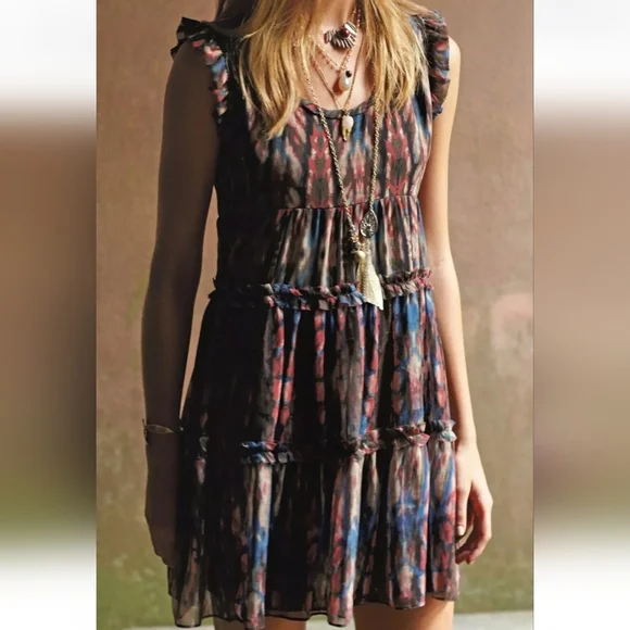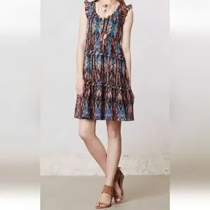 Sandro Multicolor Sleeveless Ruffle Dress Size 2/S Boho Chic