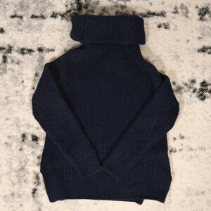 Sandro Oversized Neck Navy Wool Sweater