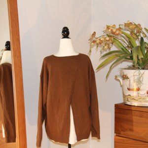 Sandro Paris brown long-sleeve cashmere sweater with white silk back lining.