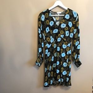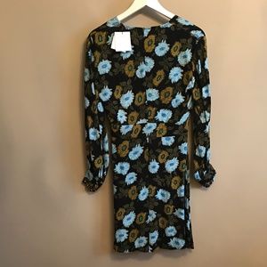 Long sleeve printed dress, rhinestone details on the cuffs, hidden side zip.