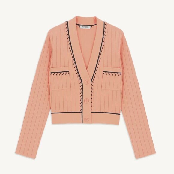 Keywords: Sandro cardigan, Sandro Paris, embroidered cardigan, wool blend cardigan, designer knitwear, Parisian style, French fashion, classic cardigan, capsule wardrobe, elevated basics, pre‑loved designer, excellent used condition