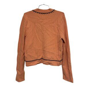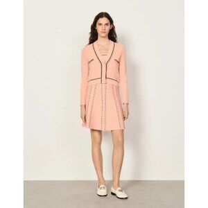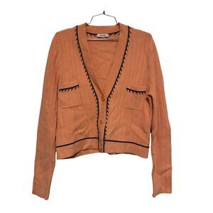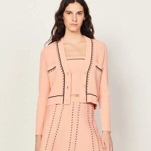 Sandro Paris Embroidered Knit Cardigan | Size M | Salmon Pink, Wool-Blend Knit