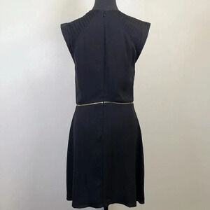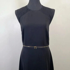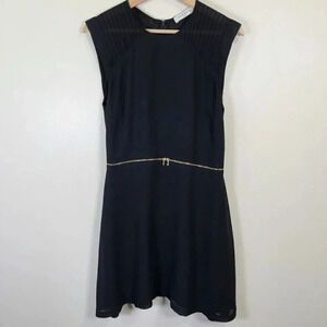 Sandro Paris Fit And Flare Gold Tone Waist Chiffon Black Dress