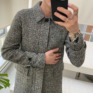 Small Sandro Paris men’s black and white tweed overcoat. In