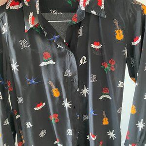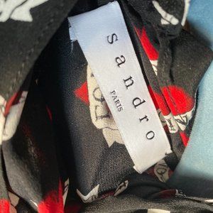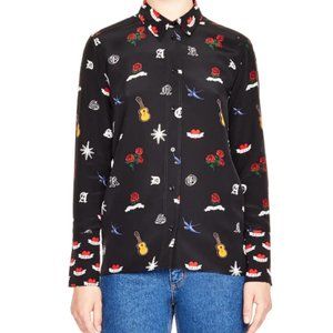 Sandro Paris Millie Tattoo Print Silk Shirt