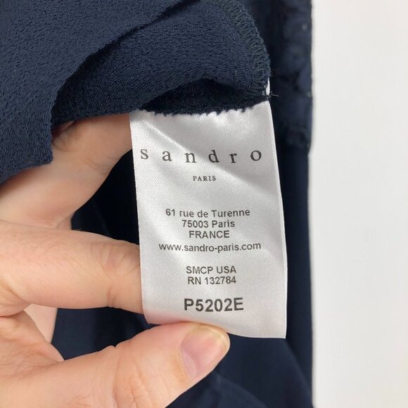 Very Good, pre-owned condition with no rips, holes, or stains. Size is cut off on the tag, check measurements below. My guess is a Sandro size 2 or a “small to medium” averaging out at a size US 6.