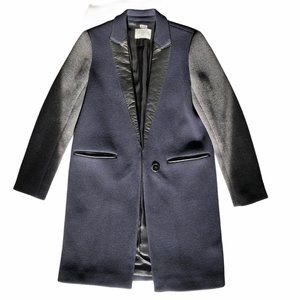 Sandro Paris Navy Colorblock Tailored Wool Coat 36
