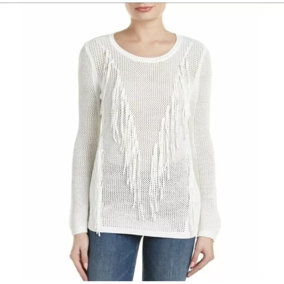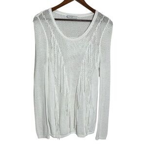 Sandro Paris Open Knit Fringe Top Sweater Long Slev Size Small