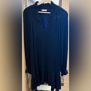 Sandro Paris Royal Navy Blue Satin Long Sleeve Mini Dress women's size Medium