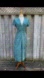 Absolutely gorgeous empire waist, draped midi dress with a geometric pattern. This romantic dress is a timeless piece that blends 1930s vintage charm with modern sophistication. Crafted from a lightweight crepe, it features a flattering fit-and-flare silhouette, flutter sleeves, and draped empire waist adorned with buttons that cinches beautifully. The bold teal green background contrasts the intricate pink and white diamond pattern, giving showstopper appeal. Perfect for any occasions. Tag size 38.