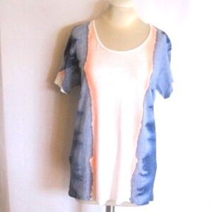 Sandro Paris Tye Dye Top. Color: Blue/White/Neon Peach. SIZE: 2 FR (6) (armpit to armpit measures 18.5"). Features: