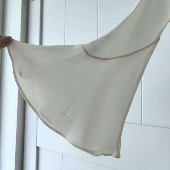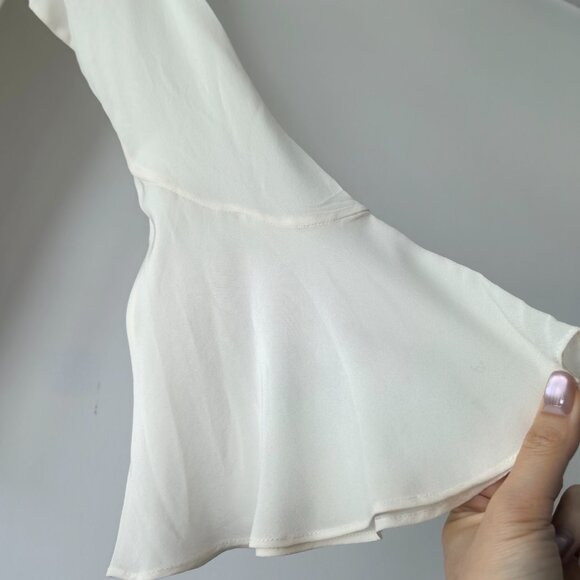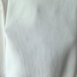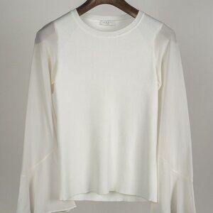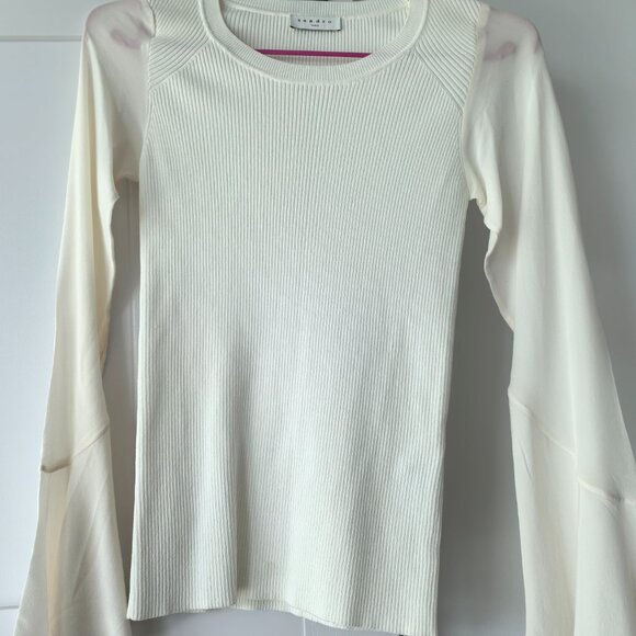 Sandro Paris White Ribbed Top with Sheer Flared Sleeves