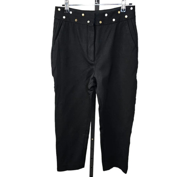 Sandro Paris Womens High Waisted Crop Straight Leg Pants Studded Waist Size M