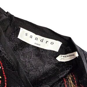 Sandro Paris Womens Lace Sheer Embroidered Long Sleeve Blouse, Open Back, 1/US S