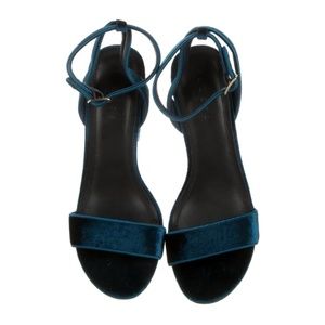 Sandro Paris block heels blue velvet buckle closure at ankles Size 6