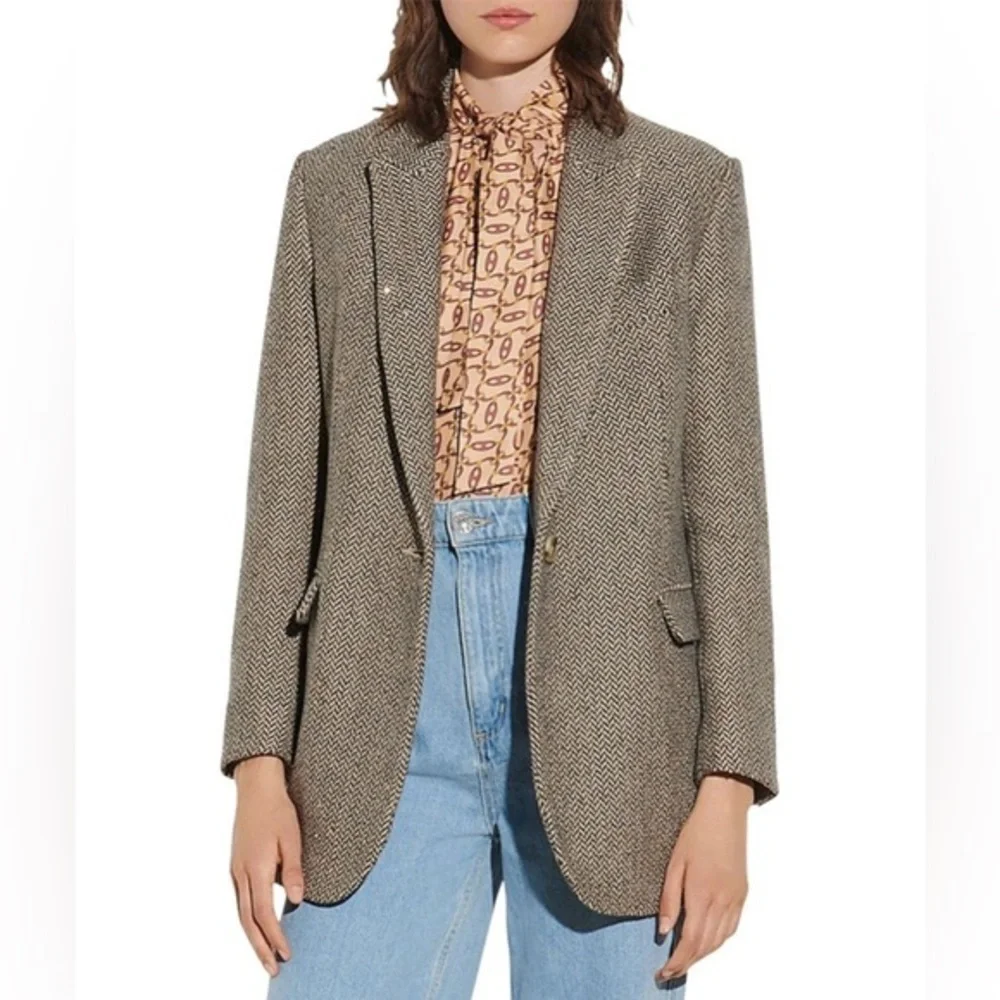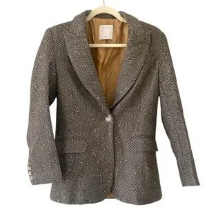 Sandro “Paule” Sequin Herringbone Blazer Brown Tweed Statement Jacket 2 / M / 6