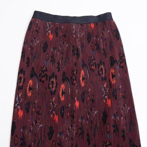 Sandro Pleated Midi Skirt Floral Burgundy Size 1
