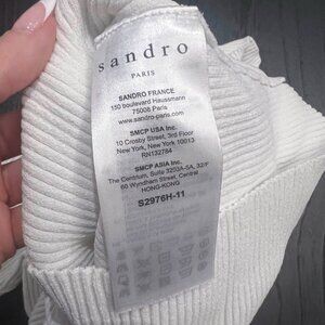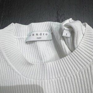 This SANDRO Paris rib-knit top features a flattering, body-skimming design that’s effortlessly stylish. Versatile, and easy to dress up or down — perfect with denim, trousers, or a sleek skirt.