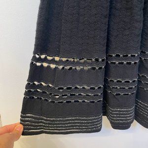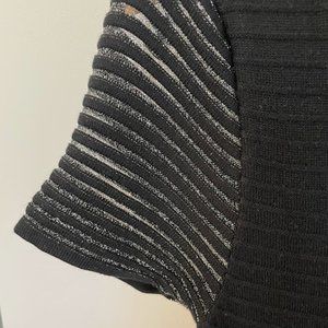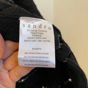 Sandro black metallic knit dress, size 2 (about a small, or a 2/4). 39% cotton, 29% viscose, 20% polyamide, 10% angora. Super flattering on!