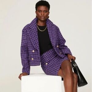 Sandro Simona Purple/Black Cropped Tweed Jacket