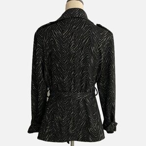 Sandro Sportswear Jacket Size Large Animal Print Zebra Black Grey Belted Lined