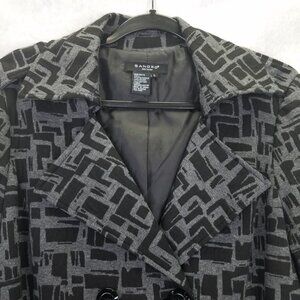 Sandro Sportswear Trench Coat Women's L Grey Black Lined Belted Double Breasted
