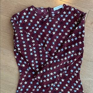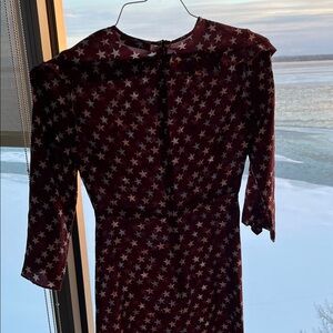 Shine in the Sandro mini dress, featuring a bold red star print. Perfect for making a statement at any event.