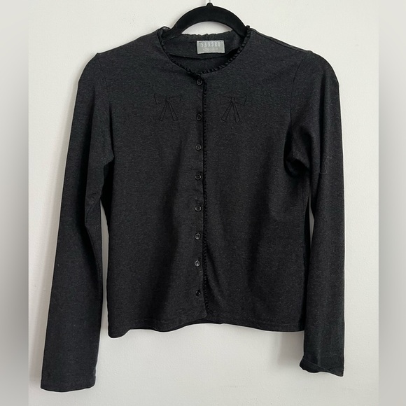 Sandro Women Vintage Unique Dark Gray Button-Up Bow Coquette Cardigan S Small