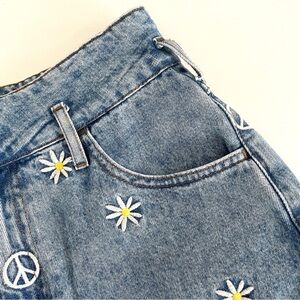 Sandro Younes Embroidered High Rise Organic Denim Shorts