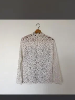 Romantic Edwardian Sheer Back White Lace Longsleeve blouse Brand: Sandro Size Small 18.5 inches pit to pit 23 inches long
