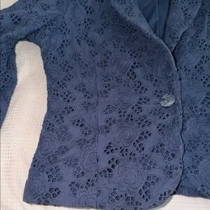 Sandro sz M 100% Cotton Women's Dark Blue Floral Lace Eyelet single but. Blazer