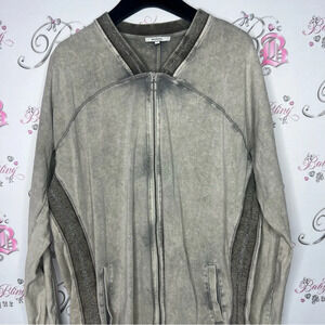 Sandwhich_ cardigan sweater distressed soft sparkly glitter beige taupe cream grey color π€ size large. Sooo stretchy and sooo soft and comfy. ππ€π₯Ή stunning sparkly throughout and zip down. Stunning π€©