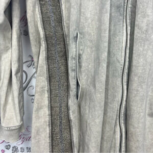 Sandwhich_ cardigan sweater distressed soft sparkly glitter beige taupe cream grey color π€ size large. Sooo stretchy and sooo soft and comfy. ππ€π₯Ή stunning sparkly throughout and zip down. Stunning π€©