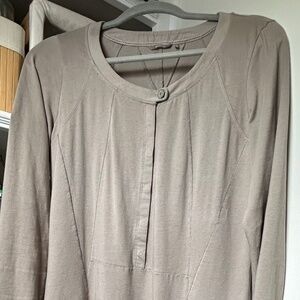 Soft olive green shift style dress from Sandwich. The jersey fabric with stretch results in an extremely comfy dress!