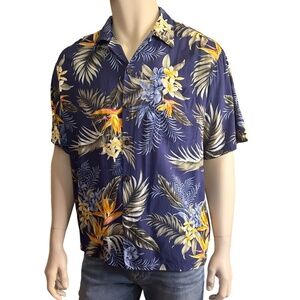 Sandwich Isle Hawaiian Shirt Tiki Button Front 100% Rayon Floral Foliage NWOT