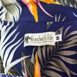Sandwich Isle Hawaiian Shirt Tiki Button Front 100% Rayon Floral Foliage NWOT