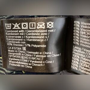 Lined dress with sheer retro pattern in blue, yellow, and black. Lightly fabric with soft stretch. Pullover with yellow trim at waist.