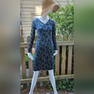 Sandwich dress,blue,yellow, black retro, med, long sleeve
