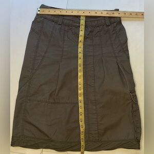 Grey cotton front zip up skirt with large cargo pocket. Rolled hemline, small zipper to expand hemline. 100% cotton. Size 34