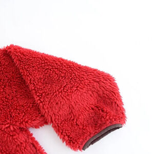 Sandy Liang Boxbox Red Fleece Snap Front Floral Patchwork Teddy Bear Jacket M